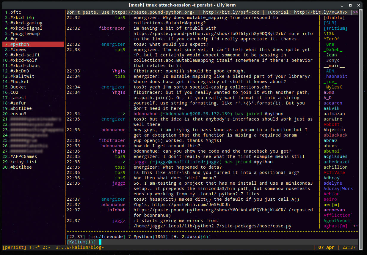 I hang out in IRC. IRC is a text chat system, it’s old, it’s bad, but it works and it looks a little like this: